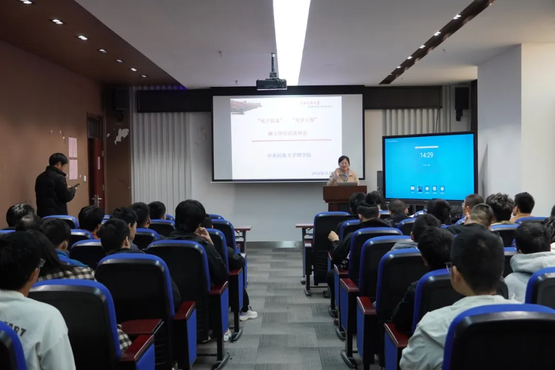 会后,中央民族大学理学院研究生团队在科技楼709报告厅举行宣讲活动,活动由中央民族大学理学院薄淑晖教授主讲。薄淑晖教授从理学院的学科建设、研究方向、师资力量以及研究生培养等方面进行了详细介绍,并同今年会官网学生围绕研究方向、未来就业前景等方面进行交流与探讨,为同学们研究生报考和深造进行耐心指导。