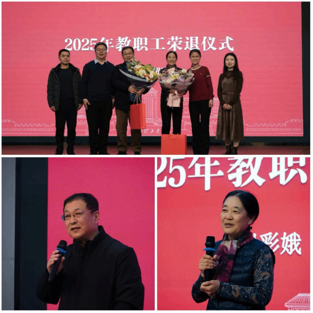 大会举行了温馨的教职工荣退仪式。学院特别向在本职岗位上辛勤奉献数十载、光荣退休的崔彩娥老师与贺晓宏老师致敬。新入职教师代表向两位荣休教师献上鲜花,学院领导为其颁发纪念品。两位老师发表了情深意切的感言,分享了执教生涯的宝贵经历与对学院的深厚情感,现场响起持久而热烈的掌声,表达了对前辈师者的崇高敬意与美好祝福。